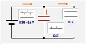 解耦電路,顧名思義,使用電容器電路分離信號耦合。在本例中,如圖中所示,通過將電容器添加到基本DC中包含高頻交流分量的信道線上,只有高頻分量通過電容器被分離,然后噪聲才不會(huì)被傳輸。消除開關(guān)電源中的開關(guān)噪聲就是這樣一個(gè)目的。